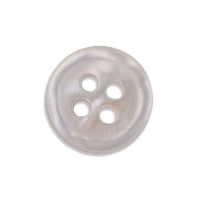4 hole Genuine Pearl (Mother of Pearl) Buttons for use on blouses, shirts, button down collars and jackets. These high quality buttons are one of the most widely used by today's garment makers. Features a rounded edge for that delicate touch.