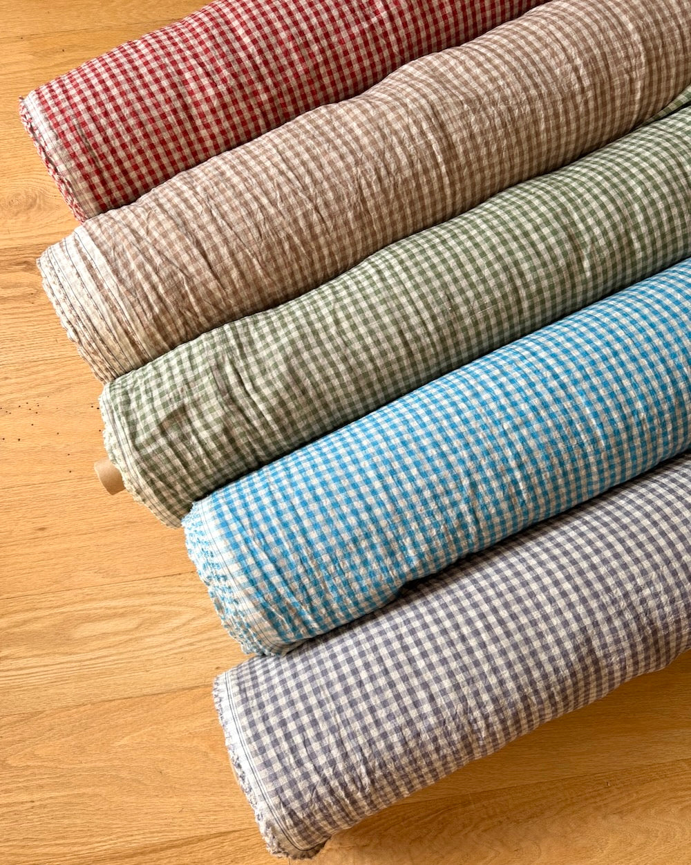 This summery linen is the perfect fabric for a cottagecore summer! We love how playful but neutral these ginghams can be. Each of these colorful ginghams feature a main color paired with a natural gray. Make a pair of fun pants like the Arthur or Bob, or sew up a breezy dress like the Hallon or Rundle!