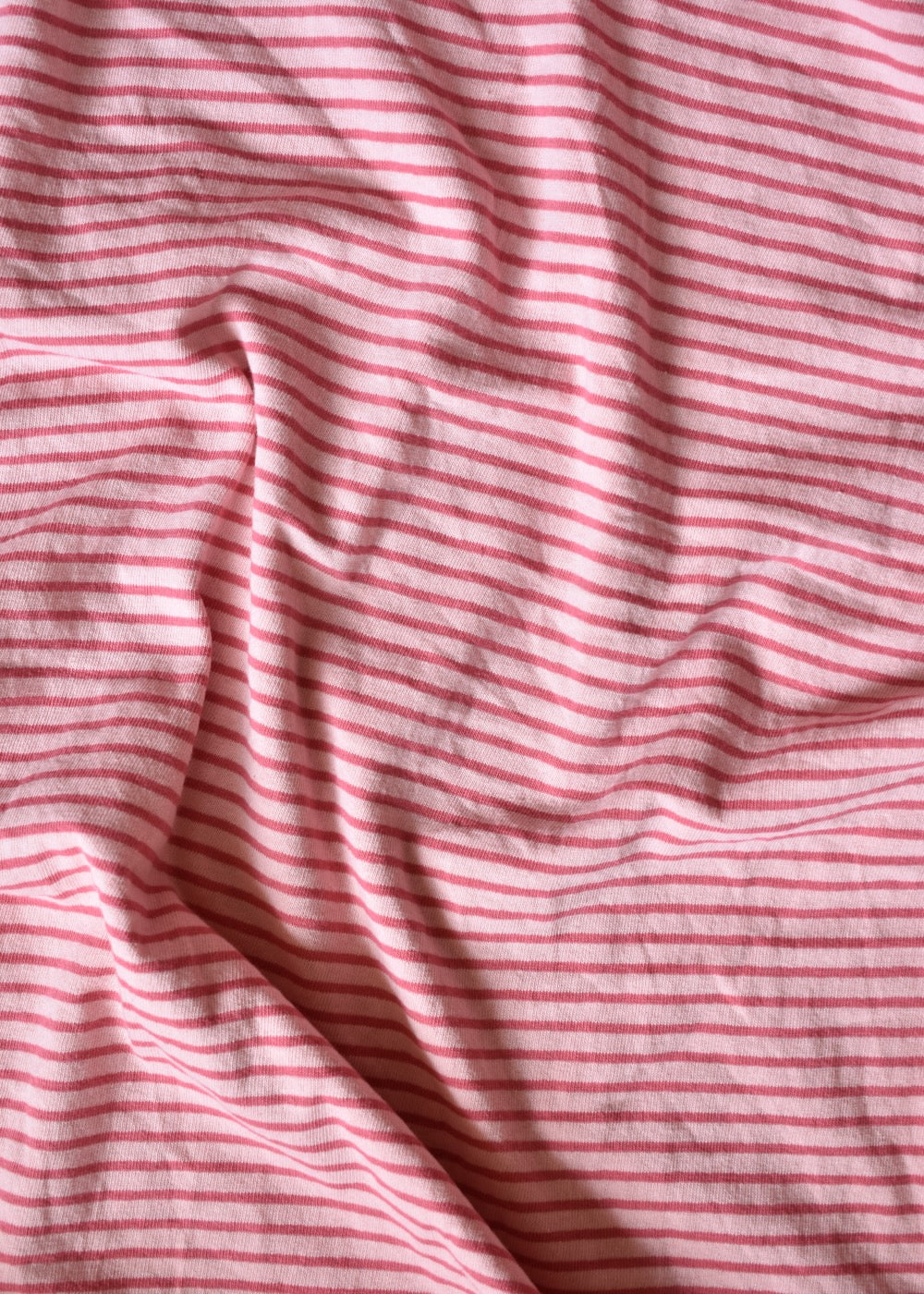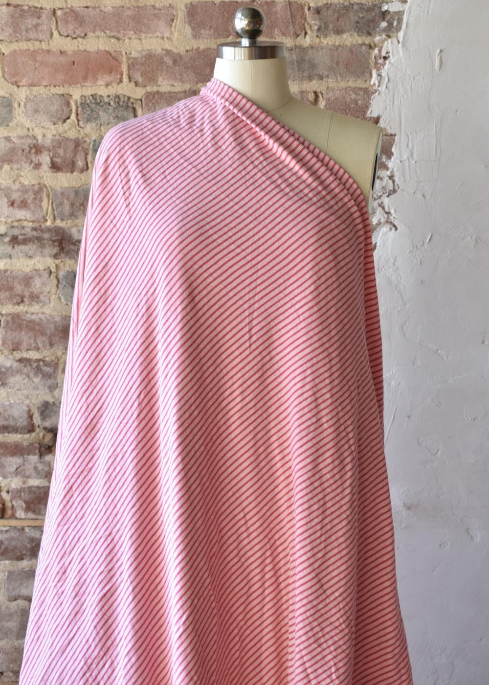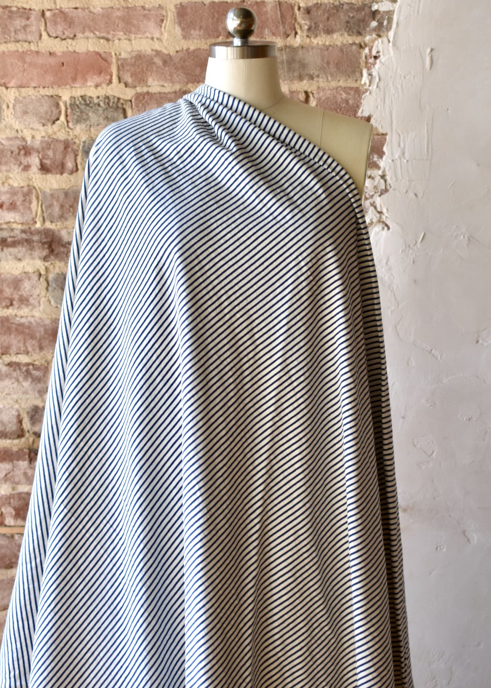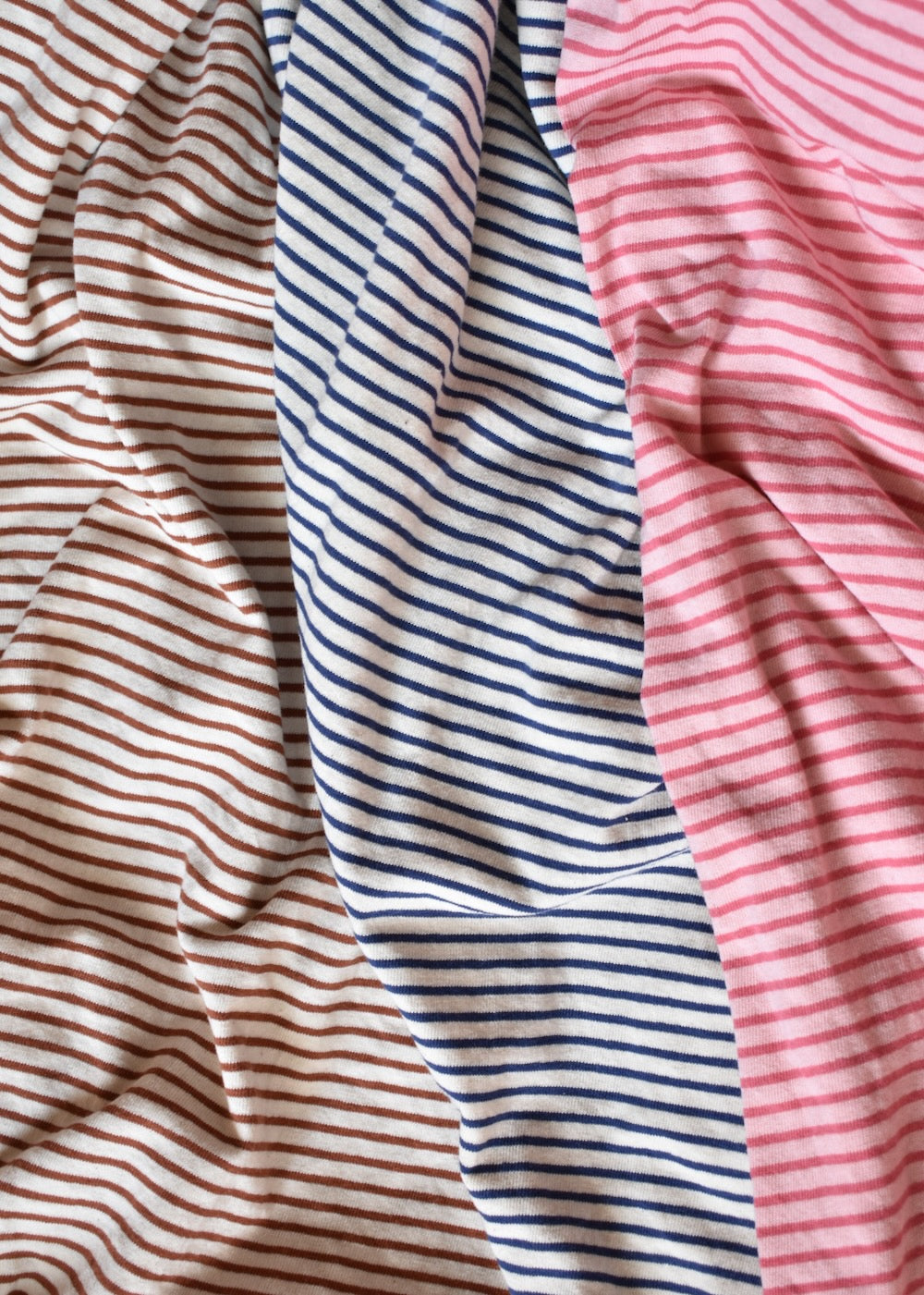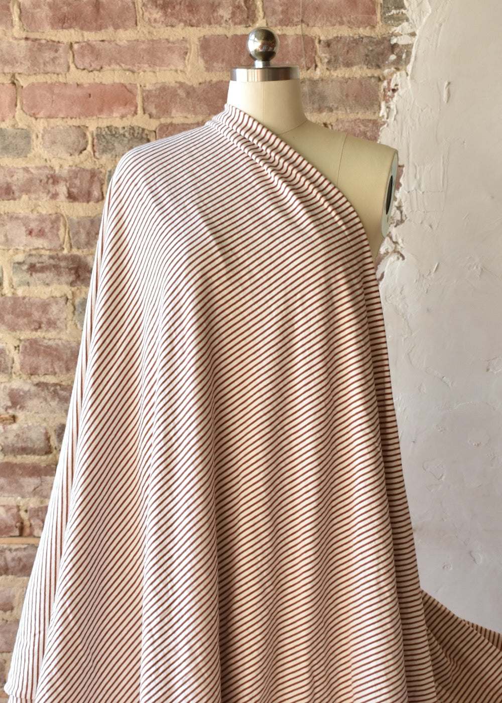 This non-stretch striped knit is the perfect fabric for making the comfy loungewear of your dreams! Because there is no spandex content and thus less recovery, this fabric ideal for garments that are not too fitted. Try the Lizabeth Lounge Top, or the Nico Pullover!