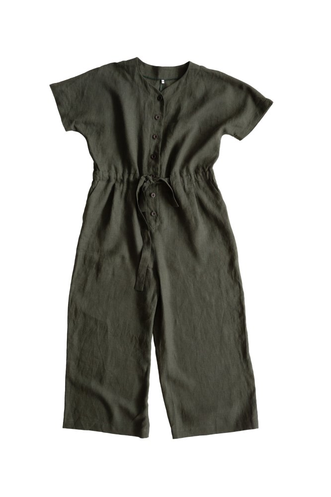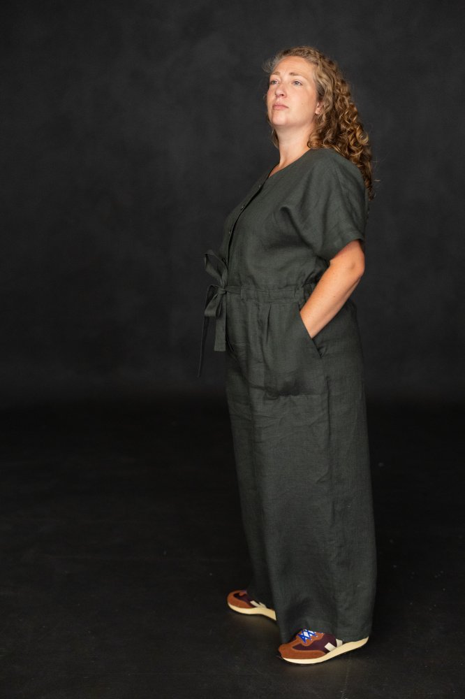 Practical and hardworking, Cassidy is an unstructured jumpsuit featuring an elasticated back and front tie. Long or short sleeves and a wide leg with side pockets.